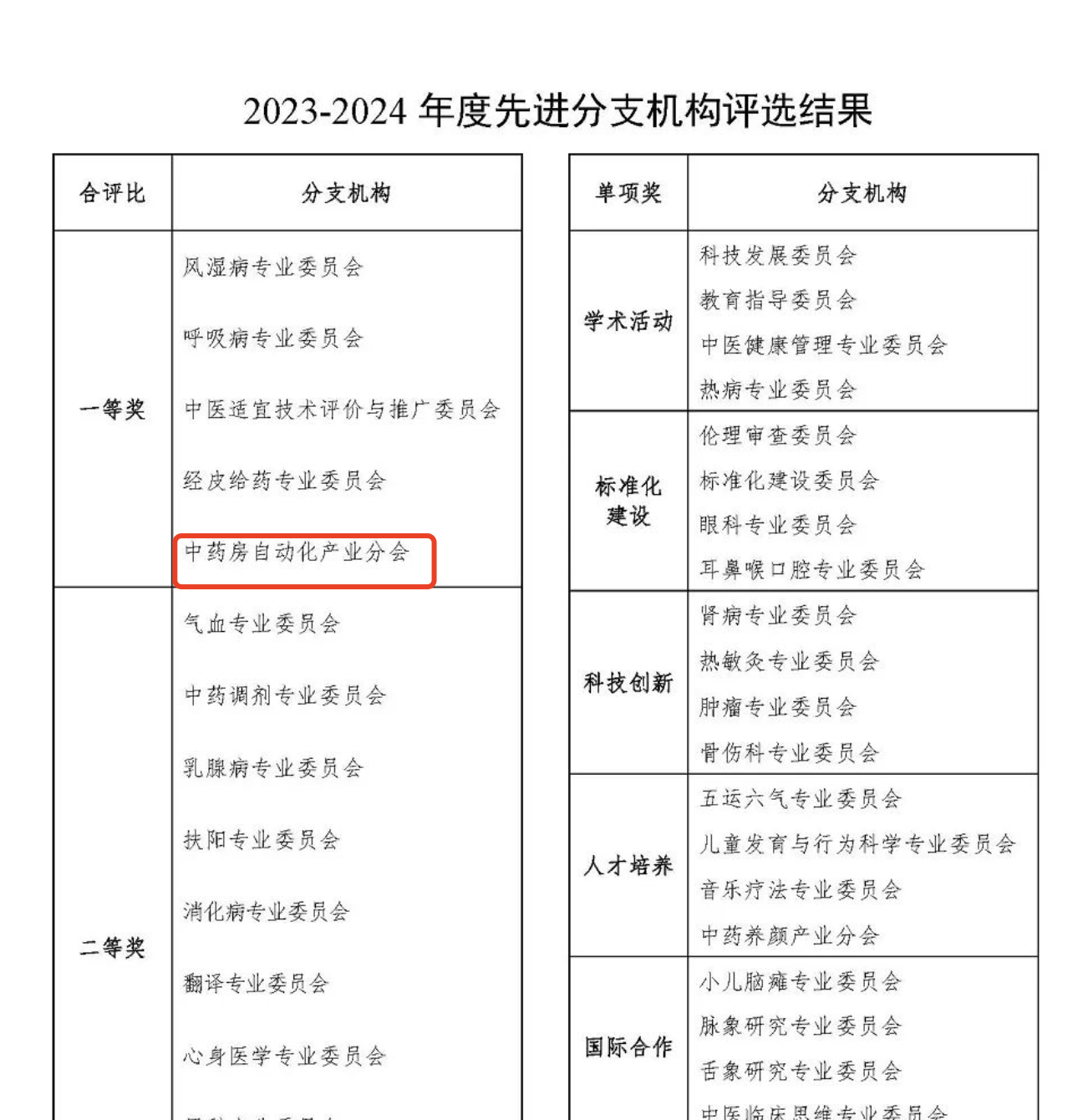 產(chǎn)業(yè)分會(huì )中唯一:中藥房自動(dòng)化產(chǎn)業(yè)分會(huì )榮獲“2023-2024年度先進(jìn)分支機構一等獎”