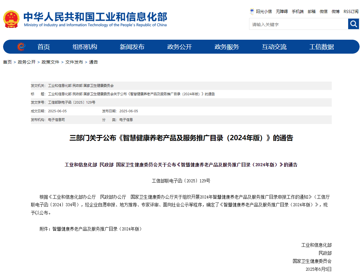 《智慧健康養老產(chǎn)品及服務(wù)推廣目錄》是為深入貫徹《中共中央 國務(wù)院關(guān)于加強新時(shí)代老齡工作的意見(jiàn)》《國務(wù)院關(guān)于印發(fā)“十四五”國家老齡事業(yè)發(fā)展和養老服務(wù)體系規劃的通知》《國務(wù)院辦公廳關(guān)于發(fā)展銀發(fā)經(jīng)濟增進(jìn)老年人福祉的意見(jiàn)》,落實(shí)《智慧健康養老產(chǎn)業(yè)發(fā)展行動(dòng)計劃(2021—2025年)》,促進(jìn)典型智慧健康養老產(chǎn)品和服務(wù)推廣應用,推動(dòng)智慧健康養老產(chǎn)業(yè)發(fā)展,由工信部、民政部、衛健委三部門(mén)聯(lián)合組織開(kāi)展的一次評選活動(dòng),按照中選優(yōu)的原則確定擬入圍的產(chǎn)品和服務(wù),向社會(huì )公示,按程序正式公布智慧健康養老產(chǎn)品及服務(wù)推廣目錄。