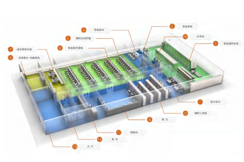 規范的分區和嚴格的流程控制,成就了現代化煎藥中心值得稱(chēng)頌的煎藥質(zhì)量。