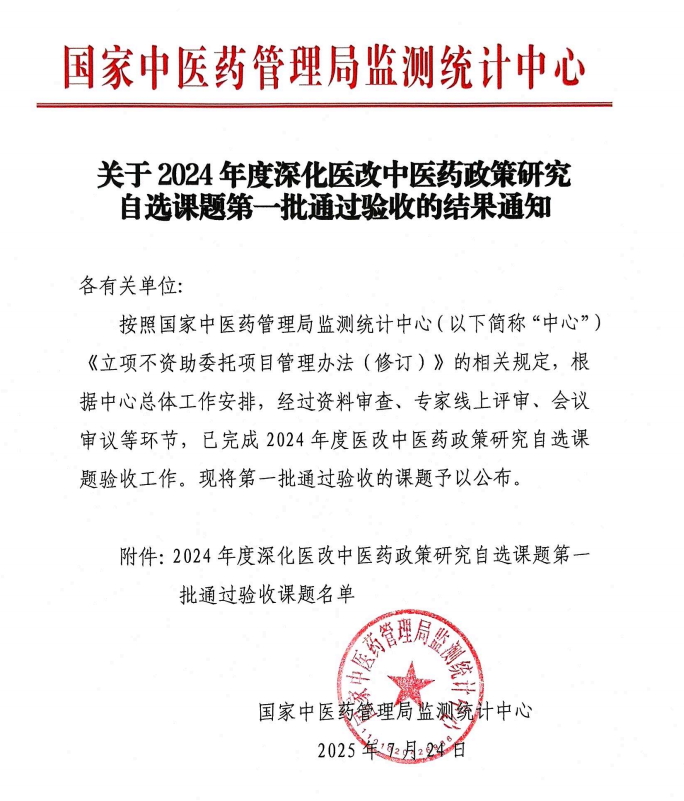 喜報!東華原申報課題通過(guò)國家中醫藥管理局監測統計中心驗收!